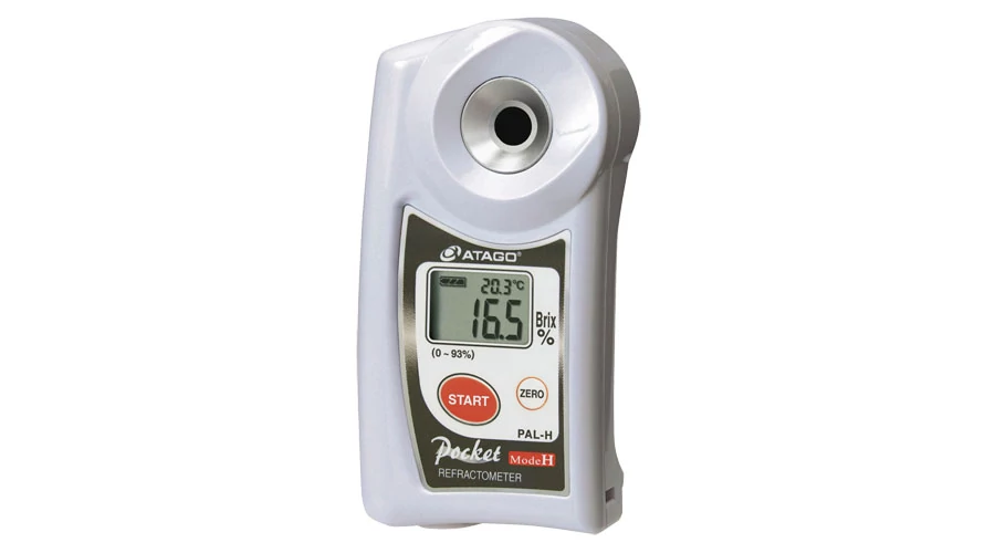 ATAGO PAL-H digitális refraktométer Brix érték (0,0-93%, 0,1%, 10-100°C között) mérésére, 100 mérés rögzítése, NFC adatátvitel. Széleskörű felhasználásra alkalmas: az egyszerű szoba hőmérsékletű folyadékoktól a forró lekvárokig minden típusú Brix mérés lehetséges. Gyors mérés, egyszerű használat: 2-3 csepp 10-100 °C hőmérsékletű folyadékot kell a prizmára cseppenteni. A Start gomb megnyomása után Brix érték és a hőmérséklet mérése megtörténik. IP65-ös védettségének köszönhetően nagyon könnyen tisztítható, akár folyóvíz alatt is lemosható. 100 mérés rögzítése (a 101. mérésnél az első mérés lesz felülírva), NFC adatátvitel. Javasoljuk a gyártónál történő garancia regisztrációt (itt), mely után ingyenesen letöltheti az NFC adatátvitelhez készített ATAGO Logger szoftvert.
