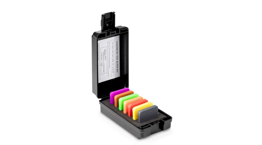 Sauter (KERN) AHBA-01 műanyag tesztblokkok HBA, HB0 anyag keménységmérőkhöz. A készlet tartalma 7 darab műanyag blokk, melyekkel Shore A keménységmérőket lehet ellenőrizni ± 2 HA toleranciával. A termék adatlapját itt töltheti le.