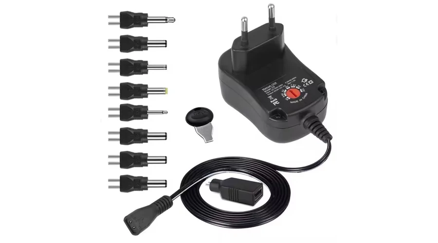 Egy adapter a legtöbb kis fogyasztású eszközhöz: választható sztandard (pozitív belül, negatív kívül), vagy fordított (pozitív kívül, negatív belül) polaritás. A 8 leggyakoribb DC csatlakozó jár az adapterhez: 3,5 mm-es jack dugó, 5,5 x 2,1 mm, 3,5 x 1,35 mm, 4 x 1,7 mm, 2,5 mm-es jack dugó, 5 x 2,1 mm, 5,5 x 1,5 mm, 5,5 x 2,5 mm, továbbá egy mikro USB csatlakozó.